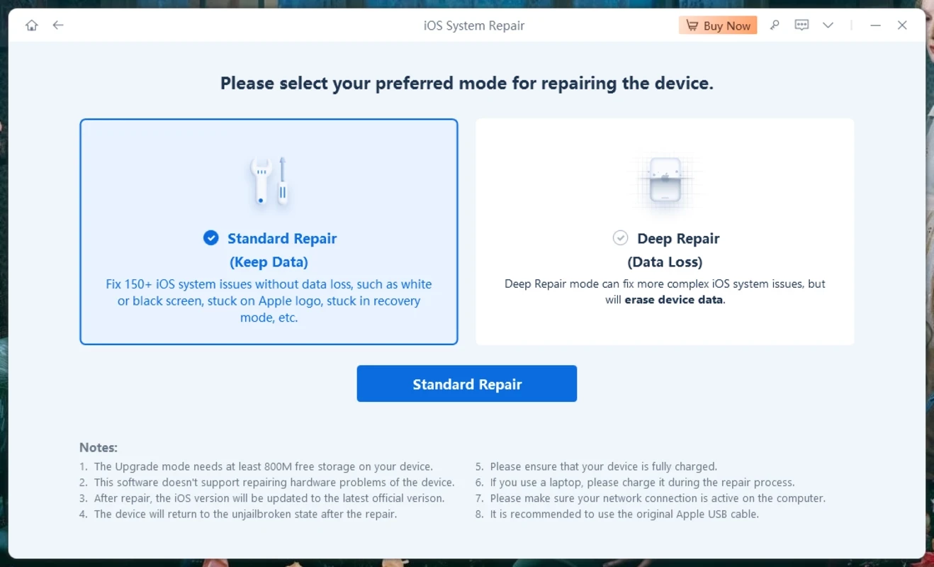 Tenorshare ReiBoot специально разработан для решения любых проблем с перезагрузкой устройств Apple. Процедура использования программы очень проста. Вам нужно подключить неисправное устройство к ПК, так как программа работает на компьютере. После подключения программа легко диагностирует проблему и устраняет её.